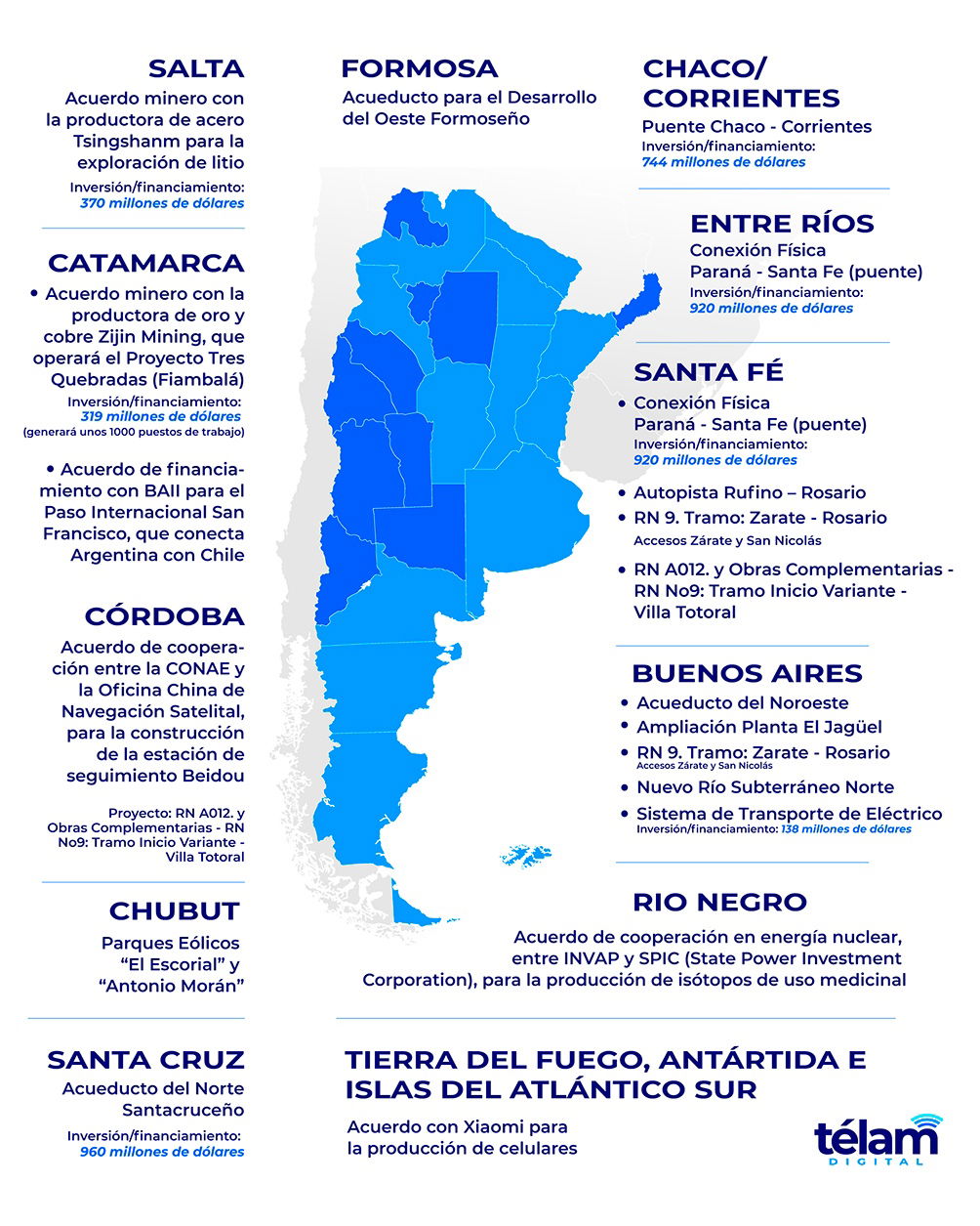 La visita al país en 2014 de Xi Xinping durante la presidencia de Cristina Fernández implicó la consolidación de una asociación estratégica integral entre los dos países. En mayo de 2017 el presidente Mauricio Macri expresó sus dudas sobre algunos acuerdos y pidió modificarlos pero asistió al Primer Foro de la Iniciativa de la Franja y la Ruta en Pekín en 2017 y profundizó el vínculo entre ambos países. La inauguración de la Planta Solar Fotovoltaica en Cauchari Jujuy, la más grande de América Latina, durante su mandato fue un gran hito de este vínculo. Finalmente, en febrero de 2022 el presidente Alberto Fernández y su par Xi Jinping acordaron la adhesión de Argentina a la iniciativa china de La Franja y la Ruta (OBOR) el proyecto más ambicioso del gigante asiático en el cual se enmarca su política de inversiones en infraestructura a lo largo del mundo.