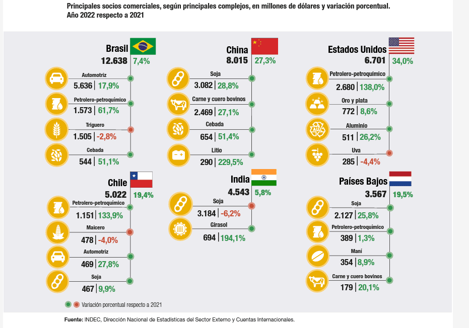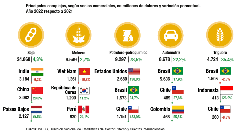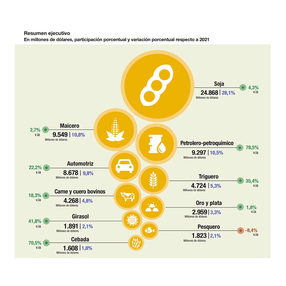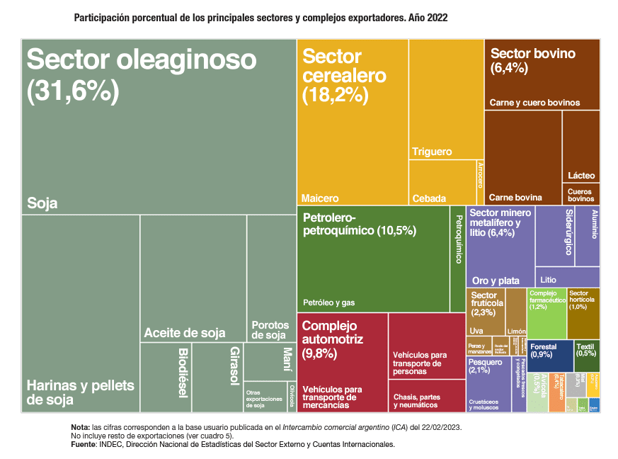 En números concretos, durante 2023, las exportaciones alcanzaron 88.446 millones de dólares. Esto es un +13,5% superior al año anterior pero su incremento se explica en un aumento del 16.2% en los precios, puesto que las cantidades exportadas disminuyeron un 2.3%.