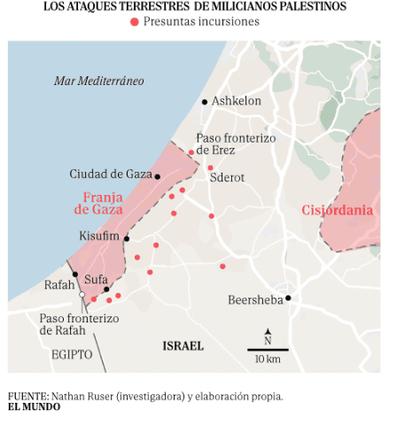 La penetración de milicianos de Hamas a barrios, kibutz y campos israelí con violencia extrema atacando y secuestrando a civiles que ha causado al menos 800 muertos y cientos de heridos con imágenes estremecedoras con cadáveres en las calles. La barbarie fue total con exhibiciones de soldados israelíes muertos por las calles y el secuestro de ancianos, mujeres y niños como trofeos de guerra. . Sin dudas, fue el mayor ataque terrorista que sufrió Israel en su historia