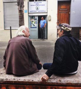En la esquina de 25 de marzo y Juan Osoria cuelga un pasacalles: “Habla Talvi”. Indica la hora y el lugar del mitin. Es una práctica común. En Montevideo se ven carteles que convocan a reuniones, actos o incluso a tomar un café con los candidatos. En las ventanas, las rejas o los balcones de las casas particulares hay anuncios proselitistas, que cuelgan los simpatizantes. La campaña es cercana, de cuerpo a cuerpo, y se respira un aire de convivencia democrática. Por eso llama la atención que la prensa hable de un clima de crispación política. De una grieta.